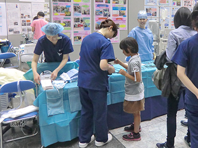 医学部附属病院では、「京大病院オープンホスピタル2016」を開催しました。このイベントは、将来の医療を担う人材および地域住民など多数の方々に、安全で安心を得られる質の高い医療を提供するため、院内の各部門が実施している活動内容を紹介し、同病院の魅力を伝えることを目的に2006年から毎年開催しているもので、2016年で11回目の開催となりました。