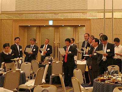 懇親会では、名誉会長の谷本正憲 石川県知事(法学部・1968年卒)から金沢まで開通した新幹線を早く関西まで延伸させ、金沢・京都間をより一層発展させていきたい旨の挨拶がありました。続いて、熊谷英彦 副会長(農学部・1964年卒)の乾杯の発声で開宴となり、芸妓の舞、ギターの生演奏が行われるなか、各テーブルでは昔話に花が咲き大いに盛り上がりました。その後、会員全員で肩を組んで「逍遙の歌」と「琵琶湖周航の歌」を合唱し、最後に中島秀雄 副会長(経済学部・1973年卒)の挨拶により、盛況のうちに閉会となりました。