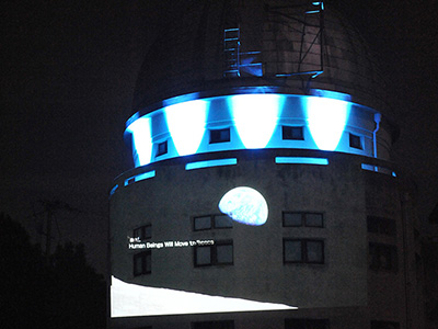 同コンサートは、花山天文台の危機を知った喜多郎氏の応援もあって開催されているもので、第4回となる今回は、同氏の発案により、京都府教育委員会と京都市教育委員会の協力のもと、京都府下の高校生が多数招待されました。当日は、素晴らしい秋晴れの満月のもと、約300人の参加者が世界初の「古事記と宇宙」映像ライブコンサートを楽しみました。