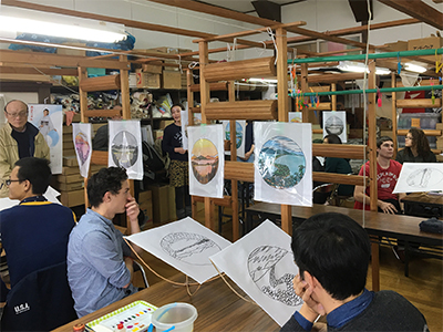 染色作品と参加者たち