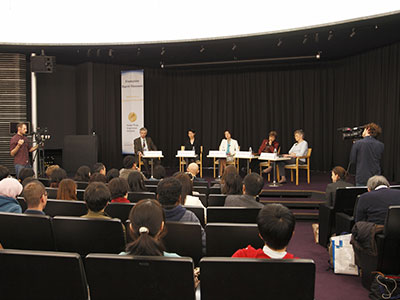 午前の部は上本伸二 医学研究科長の開会の挨拶の後、バレシヌシ博士による基調講演が行われました。午後の部のパネルディスカションには、高橋淑子 理学研究科教授と濱崎洋子 医学研究科准教授がパネリストとして参加し、「My Science Career-多様なステップで拓くサイエンスキャリア-」をテーマに、女性科学者のキャリア形成について活発な議論が行われました。若手研究者や学生にとっては今後のキャリアを考える上での貴重な機会となりました。
