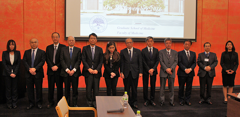チュラポーン タイ王国王女が医学研究科を訪問されました。芝蘭会館山内ホールにて、上本伸二 医学研究科長、稲垣暢也 医学部附属病院長より歓迎の挨拶の後、タイ王国に新たに設立されたHRH Princess chulabhorn College of Medical Scienceが重点的に力を入れている分野について、本学の医学研究科教員がプレゼンテーションを行い、意見が交わされました。