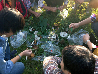 この一般公開は、生き物の暮らし方、生態系や環境問題などに関心を持たれる方々に、教科書に載っていない面白い話題をわかりやすく紹介することを目的に、毎年開催しています。2016年は定員を上回る75名の応募があり、当日は45名の参加がありました。2名の教員が話題提供をした後、当センターが所有するCERの森で自然観察会を行いました。参加者は、沢山の植物やキノコを採取し、生物の生態についての説明を聞きながら観察を行い、一般公開は好評のうちに終了しました。