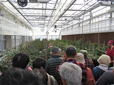 栽培施設に関する説明を受ける参加者