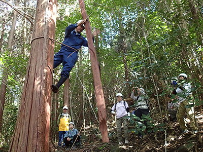 檜皮採取の実演(徳山試験地)