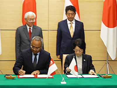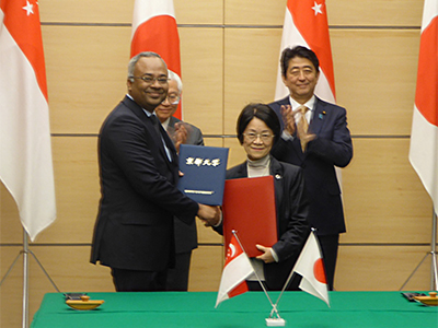 署名式・文書交換式は、2016年両国が外交関係樹立50周年を迎えたことを記念した、日・シンガポール首脳会談終了後に首相官邸にて行われ、稲葉カヨ 理事・副学長が出席しました。同式には、安倍晋三 首相と、来日中のTony TAN Keng Yam シンガーポール共和国大統領が立ち会いました。