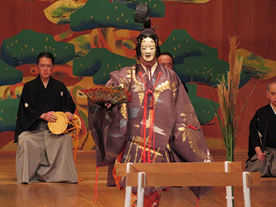今回の演目は、狂言「昆布売(こぶうり)」と能「井筒(いづつ)」で、会場には毎年心待ちにされている方や初めて鑑賞される方など多くの来場者が訪れました。狂言の「昆布売」では昆布の行商人と武士の立場逆転が表現されている場面で笑いが起こり、能の「井筒」では秋の古寺を背景に女の恋心をしみじみと描き出す物語に、鼓や笛の音も相まって会場全体が舞台に引き込まれている様子でした。