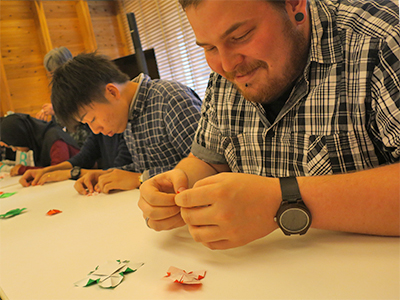途中にはさんだ休憩時間では、交流のための時間も設けたこともあり、参加した留学生と日本人学生とで談笑している姿が見受けられました。折り紙が初めての留学生が多かったにも関わらず、積極的に質問をしたり隣同士で助け合ったりしながら、最後には参加者全員が見事作品を完成させる事が出来ました。