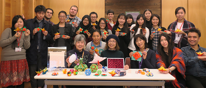 留学生ラウンジ「きずな」では、京都府国際センターなどで活躍されているボランティアグループ「おこしやす折り紙」より講師をお招きし、12月のイベント「おりがみワークショップ」を開催しました。
