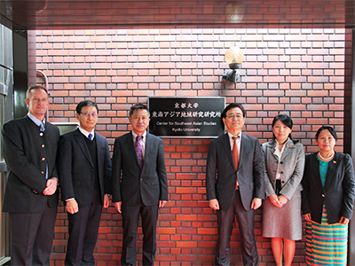 本学では、2017年1⽉1日に東南アジア研究所と地域研究統合情報センターを統合し、東南アジア地域研究研究所を設置しました。同月4日に新研究所設置記念除幕式を⾏い、関係教職員等が参列する中、湊⻑博 理事・副学⻑、河野泰之 東南アジア地域研究研究所⻑、原正一郎 同副所⻑ら6名が除幕を執り行いました。