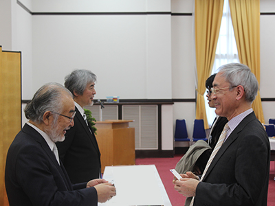 引き続き、長尾元総長の発声により乾杯が行われ、あちらこちらに歓談の輪が広がりました。