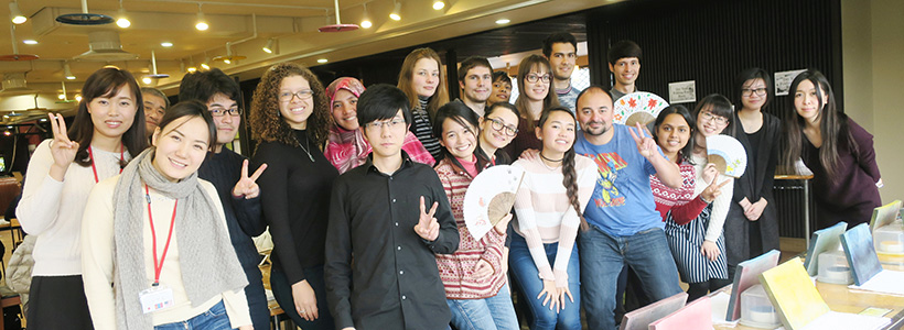 留学生ラウンジ「きずな」では、2月のイベントとして京都ハンディクラフトセンターで「京扇子絵付け体験」を行いました。