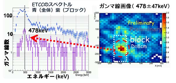 ETCCで得られたスペクトルと478keVガンマ線画像
