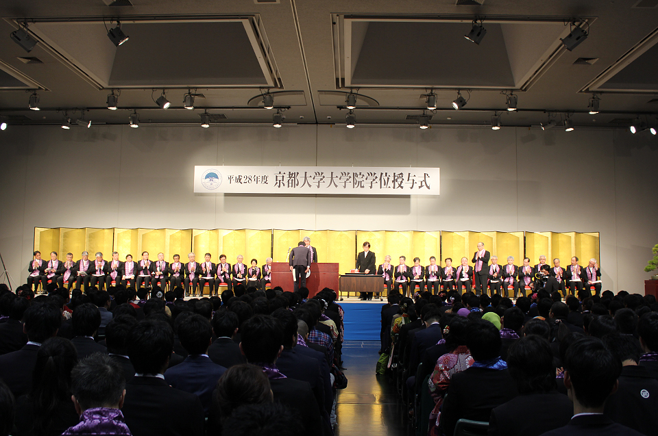 京都市勧業館みやこめっせにおいて、各理事・副学長、各部局長等の出席のもとに、大学院学位授与式を挙行しました。