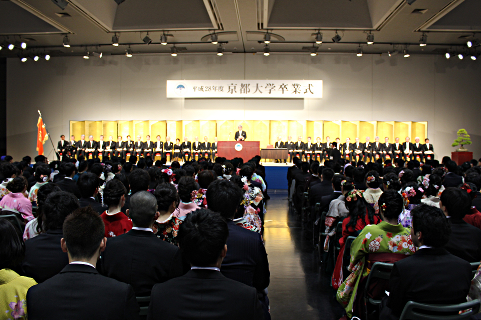 ターゲット 在学生の方 一般・地域の方 公開日 2017年03月24日 京都市勧業館みやこめっせにおいて、井村裕夫 元総長をはじめ、各理事・副学長、各部局長等の出席のもとに、卒業式を挙行しました。 今年度の卒業生は、2,888名です。 卒業生数 山極壽一 総長の式辞 平成28年度卒業式 式辞