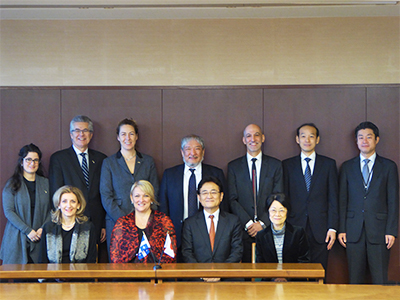 リズ・テリオー カナダ・ケベック州副首相一行が本学を表敬訪問されました。会談の冒頭、湊長博 理事・副学長と稲葉カヨ 理事・副学長がそれぞれ歓迎の挨拶を述べた後、テリオー副首相から今回の訪問に際し、ケベック州に所在するマギル大学の代表として、マギル大学とケベック州政府が本学との今後の連携を重視していることについてのお言葉がありました。その後、ケベック州と本学の研究・教育交流等に関して意見交換が行われました。