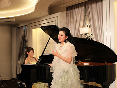 開宴後、ソプラノ歌手飯田みち代氏(教育学部・1988年卒)の独唱が行われ、各テーブルでは昔話に花が咲き大いに盛り上がりました。最後に新開輝夫氏(法学部・1978年卒)の中締めにより、盛況のうちに閉会となりました。