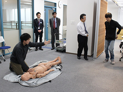 AEDの使用方法について学ぶ。