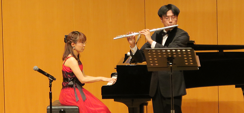 宇治在住のお二人によるプログラムでは、濱村氏のフルート、前山氏のピアノでの春の曲を中心とした演奏と随所にトークを交えた親しみやすい内容に、来場者は熱心に耳を傾けていました。また、地域交流の一環として出演いただいた東宇治中学校吹奏楽部の演奏も好評でした。