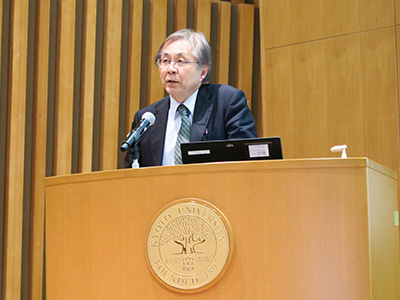 2017年度宇治事業場総括安全衛生管理者に就任した岸本泰明 エネルギー理工学研究所長による開会の挨拶に始まり、「宇治事業場の安全衛生」、「衛生管理者による巡視とチェックリスト」、「物理実験および計算機関係」、「日々の安全と危険予知等について」、「喫煙問題」、「健康管理・応急手当」、「生物実験および放射線取扱」、「化学物質管理および実験系廃棄物管理」、「実験排水」に関する説明があり、計196名(学生129名、教職員67名)の受講者は熱心に耳を傾けていました。