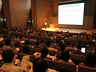 宇治キャンパスの宇治おうばくプラザ きはだホールにおいて、「平成29年度 新任教職員および新入院生等のための安全衛生教育」を開催しました。
