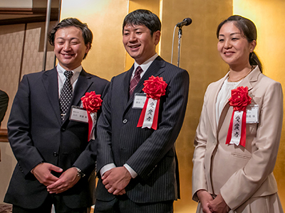 受賞者ら(左から山川助教、藤原助教、宮島助教)