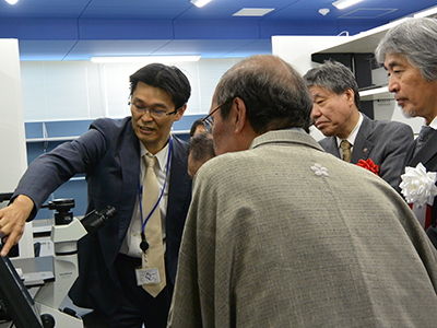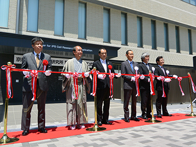 記念行事は、山下治 文部科学省文教施設企画部長、山下晃正 京都府副知事、門川大作 京都市長、山極壽一 総長、湊長博 理事・副学長、山中伸弥 CiRA所長によるテープカットに始まり、挨拶の後、内覧会を行いました。
