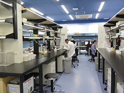 今回完成したCiRA第3研究棟は、 細胞調製施設やオープンラボ、培養室などがあり、最先端の研究を行うための設備・環境が整っています。