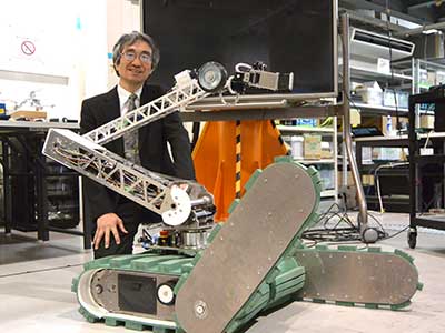 本チームが開発した「FUHGA」は大きなアームを持ち、走破性と作業性に優れた遠隔操作型ロボットです。アームを用いることで機体の支持や重心移動を行い、高い移動能力を実現したとともに、アーム先端に搭載したグリッパを用いた器用な作業、センサによる情報収集も可能です。今後、災害現場での人命救助にも役立つことが期待されます。