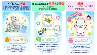 本アプリは、親子が過度なストレスを過度にため込むことなく、トイトレに取り組むことを可能にします。生物としてのヒトは、進化の過程で「共同養育」を基本とする育児により、連綿と命をつないできたと考えられています。しかし、現代社会では、核家族化が進み、多くの場合、母親が一人で育児全てを背負うという過酷な現状があります。本アプリは、「共同養育の一助」として機能することを目指しています。