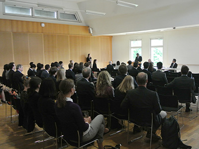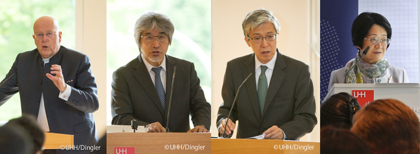 ハンブルク大学のディーター・レンツェン学長主催のオープニングディナーと、シンポジウム初日の開会式には、来賓として、八木毅 在ドイツ連邦共和国特命全権大使、安沢隆男 在ハンブルク総領事、ヨォーク・シュナイダー ドイツ研究振興協会(DFG)国際交流部部長・日本代表部代表、小平桂一 日本学術振興会(JSPS)ボン研究連絡センター長が出席され、ドイツと日本の学術交流推進について歓迎と激励の言葉をいただきました。