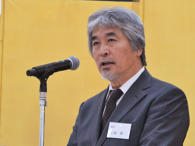 挨拶をする山極総長