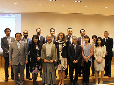 シンポジウム開催に先立ち、本学側FPの山敷庸亮 総合生存学館教授による会議の趣旨説明が行われ、本学を代表して縄田栄治 農学研究科長による開会挨拶があり、続いて、寶馨 総合生存学館長が本学と国連との連携について述べました。またFAO側代表としてチャールズ・ボリコ FAO駐日連絡事務所長による本学とFAOとの交流の歴史について説明がありました。