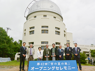 理学研究科附属花山天文台が、普段は非公開の文化財特別公開などを行う夏の京都観光の恒例行事「京の夏の旅」(京都市・京都市観光協会主催)の対象施設となり、このたび同天文台にてオープニングセレモニーを開催しました。