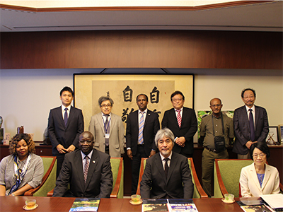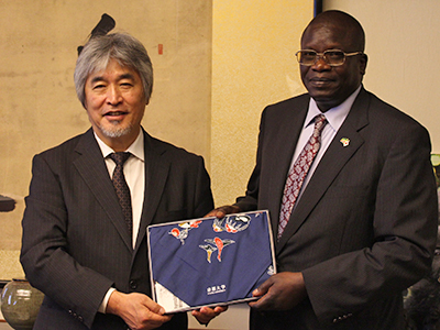 チャム・ウガラ・ウリヤトゥ 駐日エチオピア特命全権大使と小林義明 在大阪エチオピア名誉領事が来学され、山極壽一 総長、稲葉カヨ 理事・副学長、重田眞義 理事補らと懇談しました。