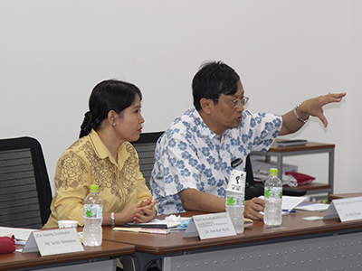 ディスカッション。左から、Myint学科長、Kywe学長
