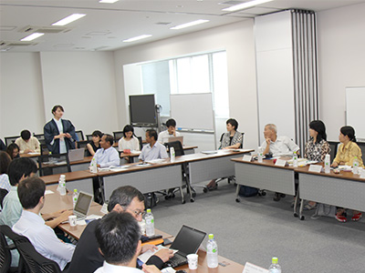 冒頭に司会進行役の木邨洗一 総合生存学館特定教授の参加者の紹介の後、川井秀一 同学館特定教授から総合生存学館の教育理念や概要説明がなされ、続いて、磯部洋明 同学館准教授が、文理融合のユニークな研究事例として「歴史書を使った過去の太陽活動の研究」と「宇宙開発とその倫理、社会問題」についての講演を行いました。