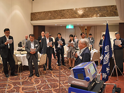 最後に中山道夫 副会長(工学部・1958年卒)のリードにより、全員で「琵琶湖周航の歌」を合唱し、川合紀章 副会長(工学部・1979年卒)の挨拶で閉会となりました。