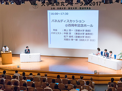 高等教育研究開発推進センターは、電通育英会および東京大学大学総合教育研究センターとの共催で、「大学生研究フォーラム2017」を百周年時計台記念館において開催しました。フォーラムには、大学関係者、企業人事関係者、大学生・大学院生、高校教員等、学内外から計334名が参加しました。