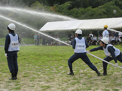 第45回左京自衛消防隊訓練大会が開催され、本学からは、吉田キャンパス東部自衛消防隊より屋外消火栓操法に2チーム、屋内消火栓操法に1チーム、吉田キャンパス西部自衛消防隊から屋内消火栓操法に1チームが出場しました。