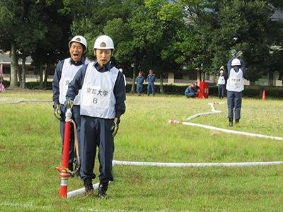 吉田キャンパス東部自衛消防隊のチームは、屋外消火栓操法では5年連続で優秀賞を、また屋内消火栓操法でも優秀賞を受賞しました。