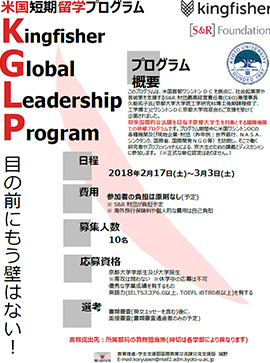 米国短期留学プログラム「The Kingfisher Global Leadership Program」の2017年度の参加者を募集します。