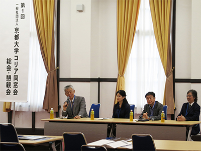 本学からは来賓として 徳賀芳弘 副学長が出席し、京都大学の現状報告と併せて、同会の一般社団法人設立登記を祝し、今後、同会のより一層の発展を祈願する挨拶をしました。