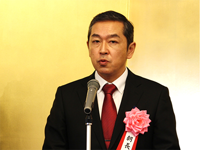 記念講演を行う朝長教授