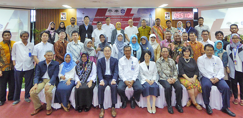 今回のフォーラムでは、本学、LIPI、ガジャマダ大学、セベラスマレット大学、ボゴール農科大学が産学連携をどのように強化しているのかを議論しました。はじめに稲葉カヨ 理事・副学長、バンバン・スビアント LIPI長官代行による開会の挨拶がありました。その後、バンバン長官代行、松原英一郎 理事補・産学連携本部副本部長(工学研究科教授)が基調講演を行い、午後からはインドネシアでも最有力の各大学・機関からの教員4名による発表が行われました。各大学にとっても産学連携は極めて重要な課題であるため、90名におよぶ参加者や関係者は熱心に耳を傾けていました。