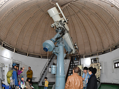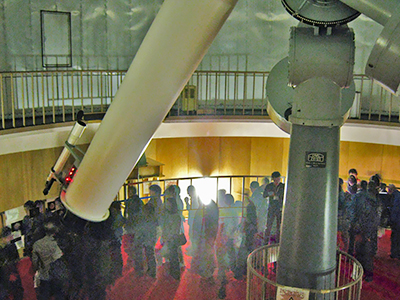 当イベントは、2泊3日のツアーのうち、主に最初の2日間を飛騨天文台で過ごすプログラムを用意して実施しました。初日は飛騨天文台での研究活動や、太陽を中心とする天体について解説する講義と、夜間観測用天体望遠鏡の見学を行いました。ただ、この日の夜は天候にはあまり恵まれず、直接天体観測をすることはできませんでした。2日目は、主に太陽観測用望遠鏡の見学と、それらを用いて得られた太陽画像の観望、さらに太陽黒点・プロミネンス・フレア爆発、オーロラ、太陽分光スペクトルなどの解説を行い、参加者からは多くの質問がありました。2夜目は短時間でしたが、晴れ間が現れ、街明かりのない星空を東洋最大の65cm屈折望遠鏡や肉眼で楽しむこともできました。当ツアーを通し、普段の生活では疎遠になっている大自然を、科学的視点から眺める楽しさを体験する機会となりました。