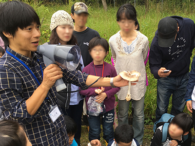 この一般公開は、生き物の暮らし方、生態系や環境問題などに関心を持たれる方々に、教科書に載っていない面白い話題をわかりやすく紹介することを目的に、毎年開催しています。2017年は定員を上回る64名の応募があり、当日は47名の参加がありました。寄生蜂の生態や行動についての講義と実習を行った後、同センターが所有するCERの森で自然観察会を行いました。参加者は、沢山の植物やキノコを採取し、生物の生態についての説明を聞きながら観察を行いました。「寄生する瞬間が、素早くて驚いた」、「観察会がメインでもいい」などの感想が寄せられ、一般公開は好評のうちに終了しました。