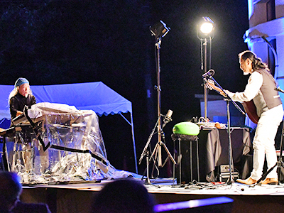 野外コンサート:喜多郎氏(左)と岡野氏(右)によるミニコンサートの様子