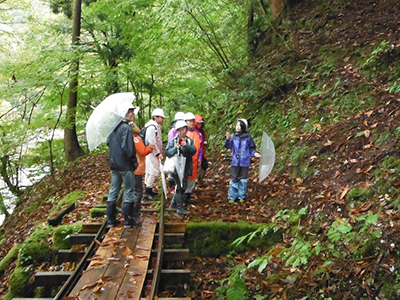 芦生研究林草創期からの歴史を持つトロッコ軌道を散策