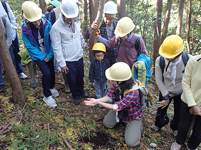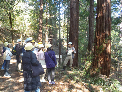 2017年は11名の応募があり、当日は10名の参加がありました。管理棟にて開会式および概要説明を行い、その後、レンタカーで研究林内の遊歩道に移動し、自然観察を行いました。全体を2つのグループに分け、教員・技術職員の解説を聞きながら遊歩道を散策しました。アンケートも好評で「初めて参加しましたが、案内の先生やスタッフの方がとても親しみやすく、分かりやすい説明で、有意義でした」など多くの感想が寄せられました。